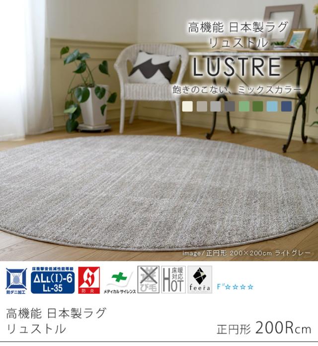 【日本製】 ラグマット LUSTRE 200x200cm 円形 ラグ マット カーペット 無地 シンプル 防音 防ダニ 床暖 ホットカーペット(代引不可)【送