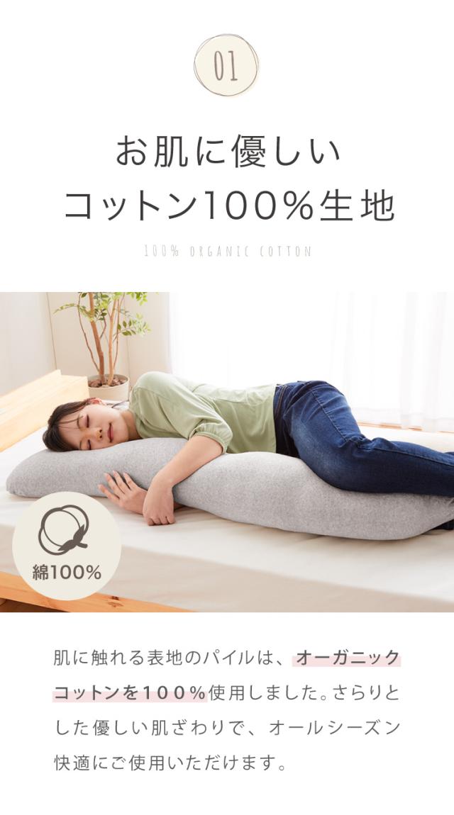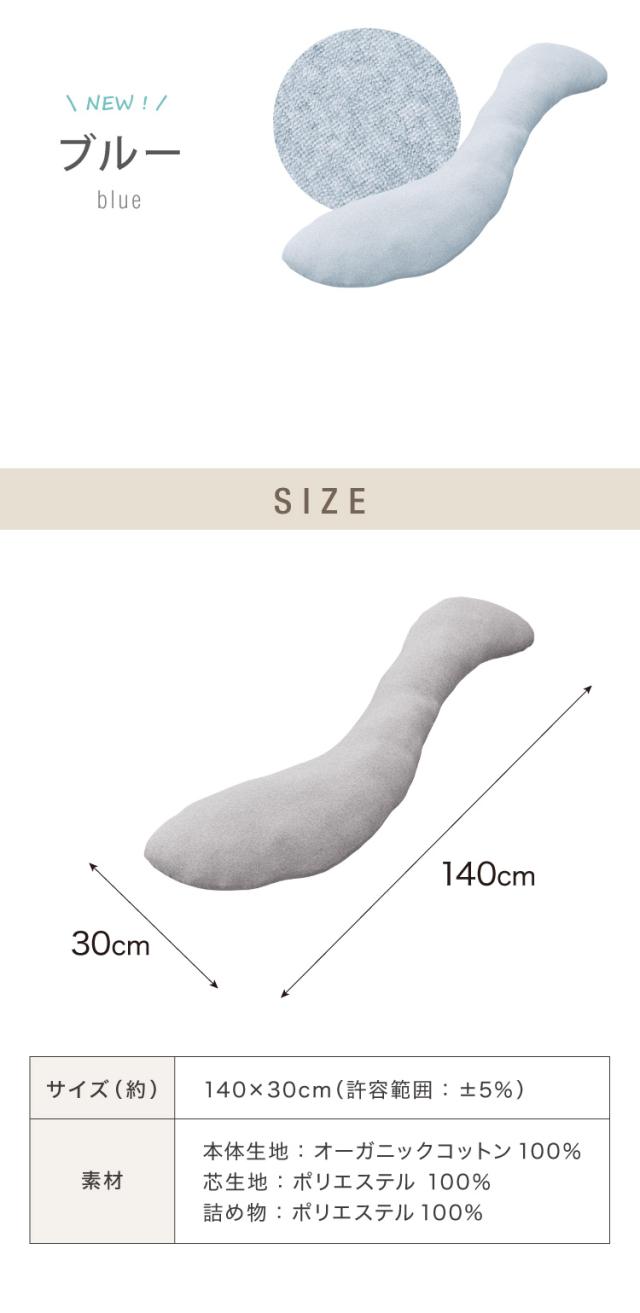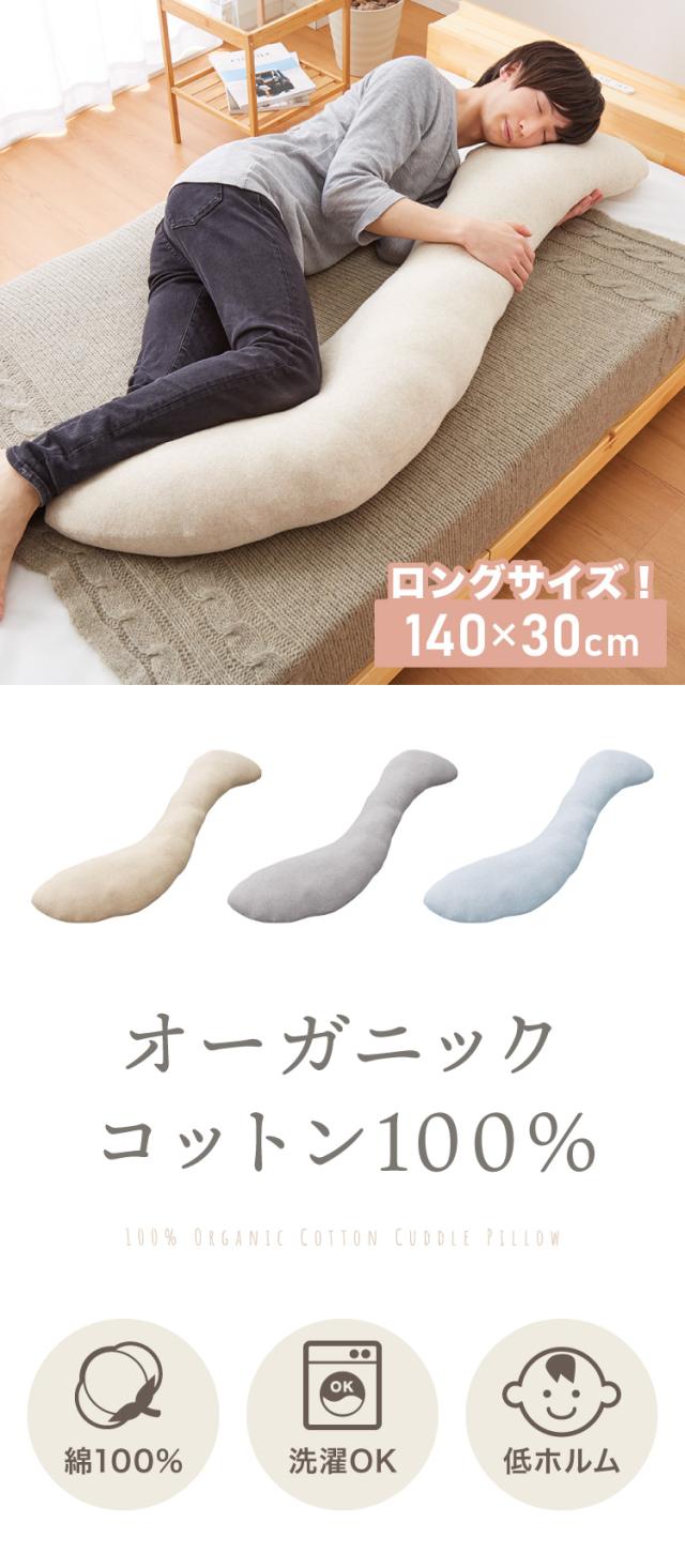 抱き枕 ロング S字 綿100% オーガニックコットン 140×30cm 洗える 抱きまくら 枕 ボディーピロー 安眠 横向き寝 うつ伏せ 妊婦【送料無