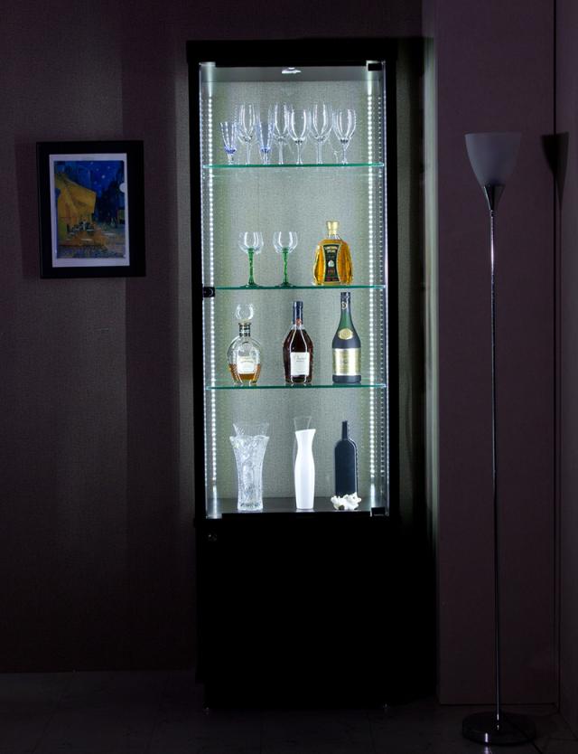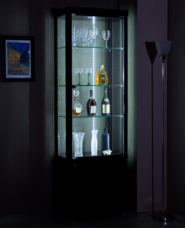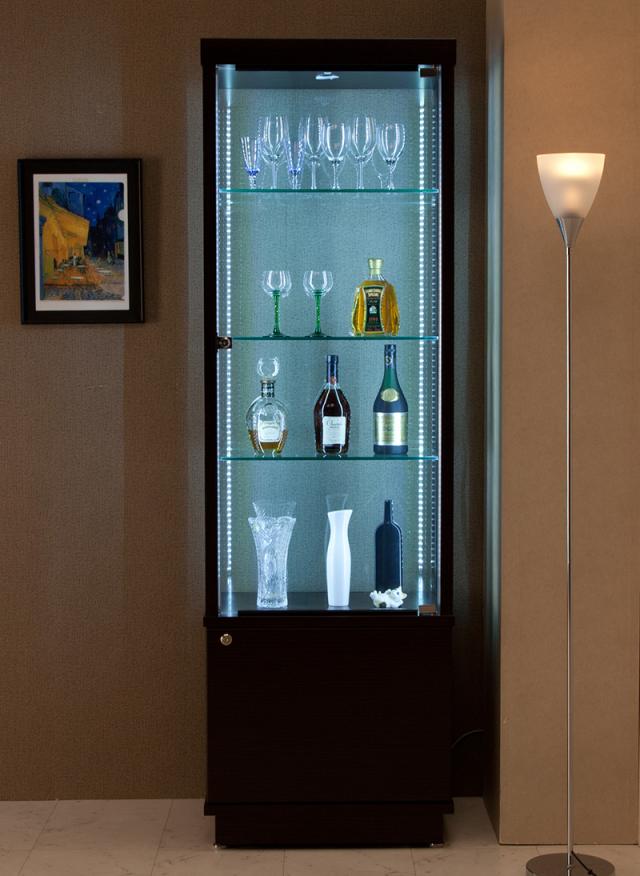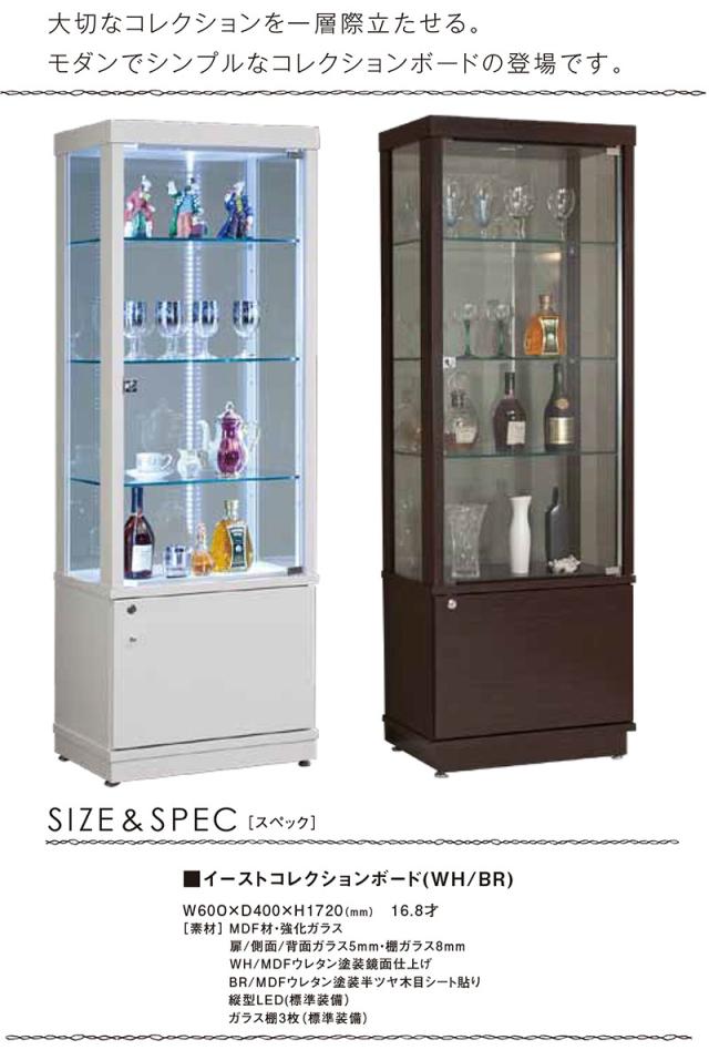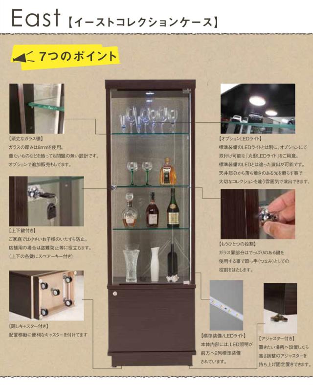 イースト60 コレクションボード 幅60 奥行40 高さ172 完成品 リビングボード コレクションラック 収納 ガラス LEDライト付属(代引不可)【