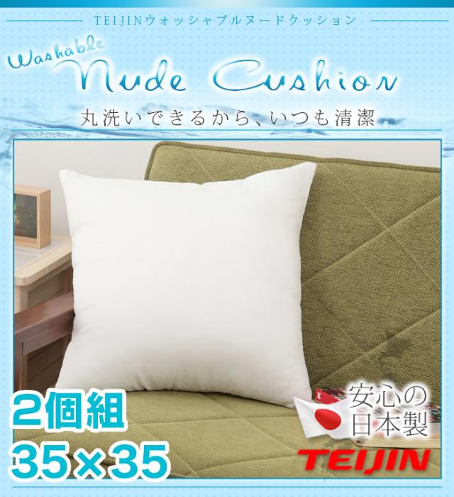 【2個組】 日本製 ヌードクッション 35x35cm 洗える テイジン中綿使用 ふかふか 肉厚 たっぷり 帝人綿 テイジン TEIJIN 中身 中材 本体 国産 洗えるクッション ウォッシャブル セット クッションカバー用 【送料無料】
