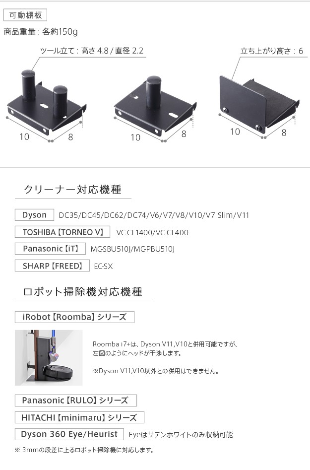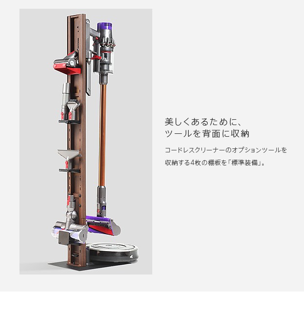 WALLクリーナースタンドV3 ロボット掃除機設置機能付き オプションツール収納棚板付き ダイソン dyson V10 V8 V7 V6 DC62 DC74(代引不可)【送料無料】
