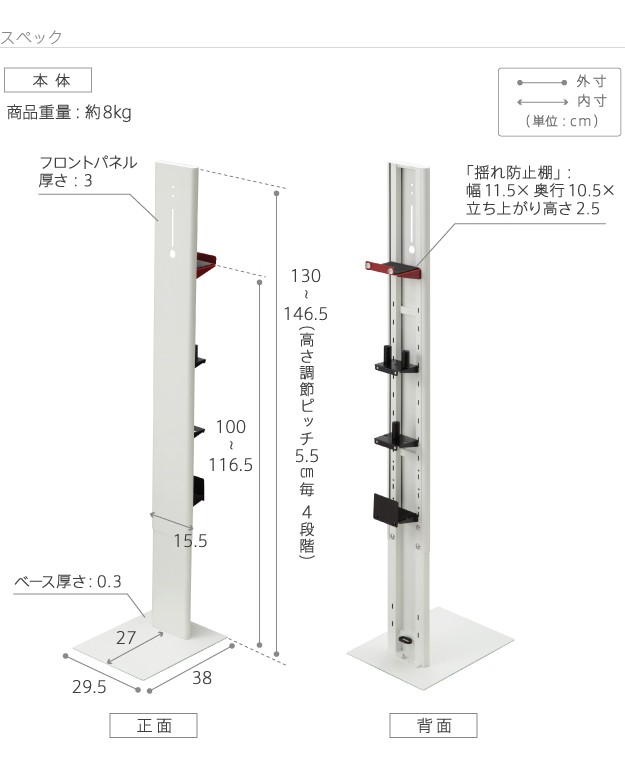 本体:幅29.5x奥行38x高さ130〜146.5cm・約8kg