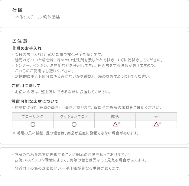 本体・固定棚板:スチール