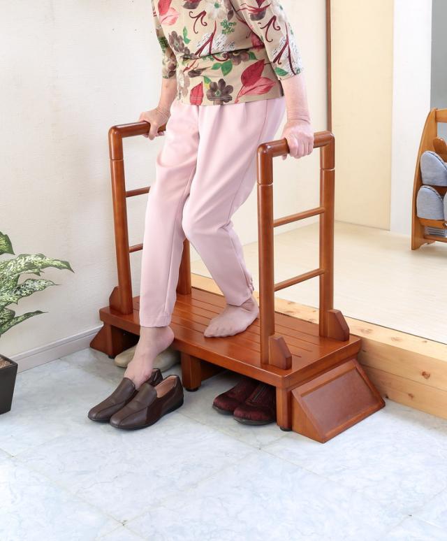 手すり付き玄関台 両手 幅80cm 手すり ステップ 台 玄関 段差 踏み台 木製 昇降 足場(代引不可)【送料無料】