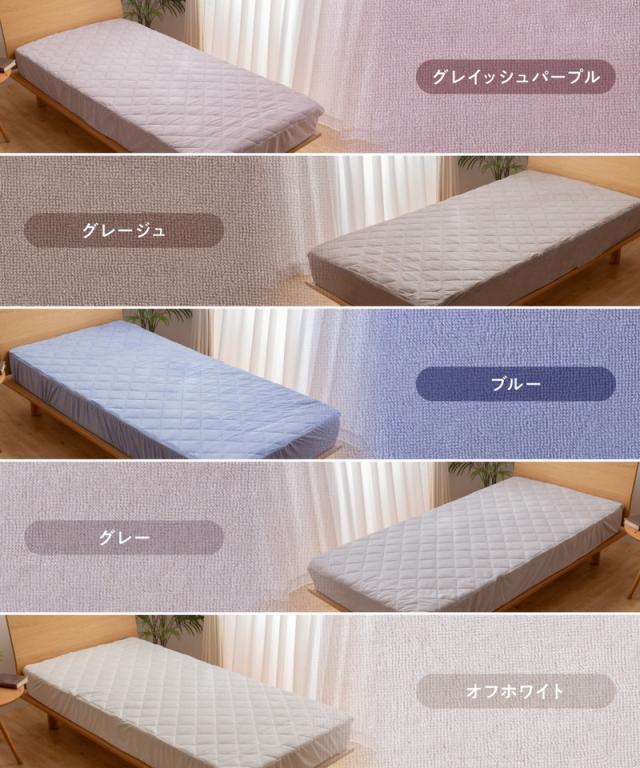 綿100%のタオル地にシャーリング加工を施し、ふんわりさらさらの肌触りが心地いい敷きパッド一体型ボックスシーツ。ベッドメイクがこれ一枚で完結します。