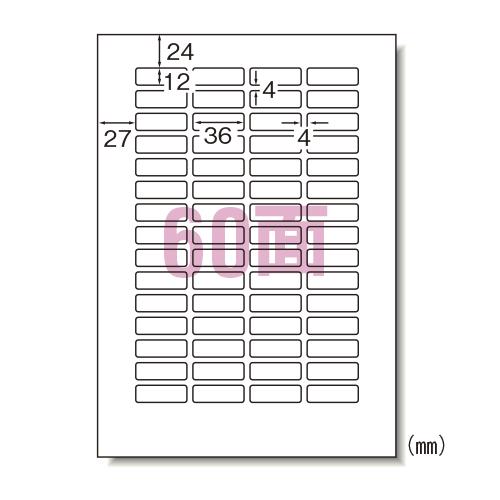 A4判 60面 四辺余白付 角丸/シートサイズ:A4判 (210mm×297mm)/ラベルサイズ:36mm×12mm(4列×15段)