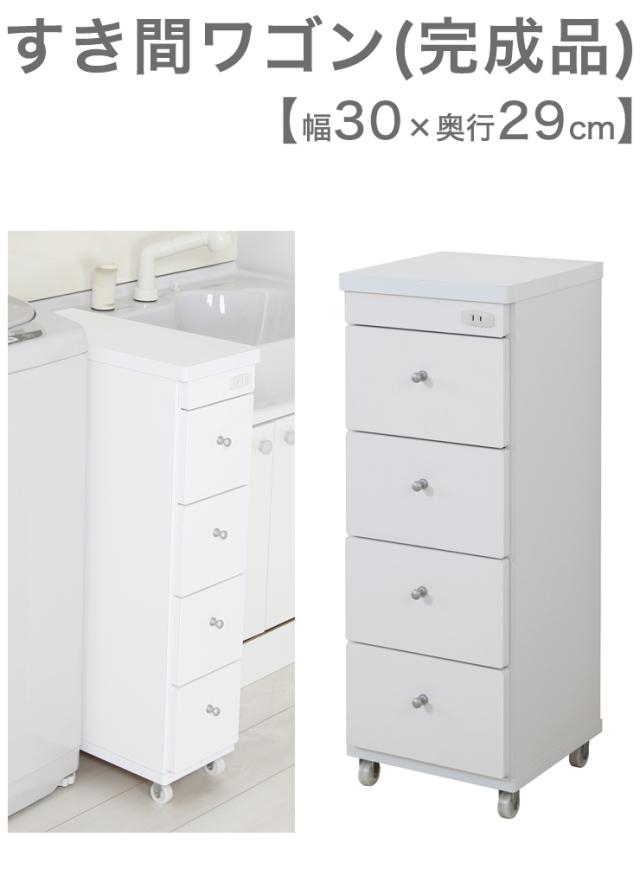 日本製 すき間ワゴン 完成品 白 幅30cm×奥行29cm すきま収納 隙間収納 ワゴン キャスター付き 引き出し 国産 キッチン ランドリー 代引不可