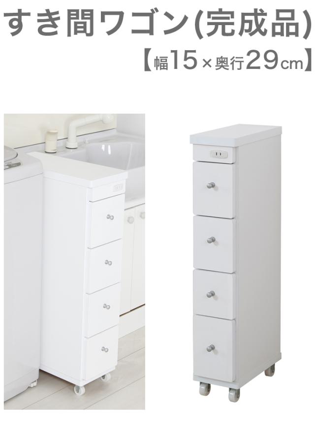 日本製 すき間ワゴン 完成品 白 幅15cm×奥行29cm すきま収納 隙間収納 ワゴン キャスター付き 引き出し 国産 キッチン ランドリー 代引不可