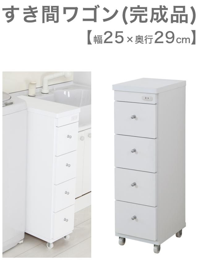 日本製 すき間ワゴン 完成品 白 幅25cm×奥行29cm すきま収納 隙間収納 ワゴン キャスター付き 引き出し 国産 キッチン ランドリー 代引不可