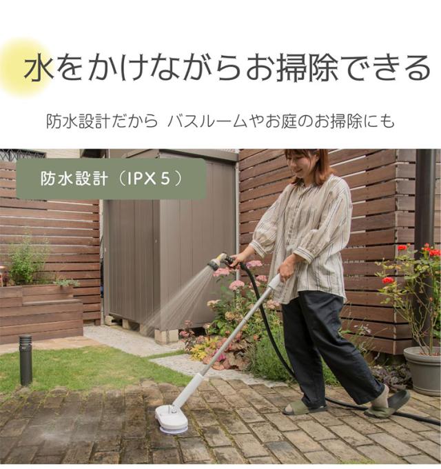 ●防水仕様のため、水をかけながら掃除が可能。お風呂の床面やお庭などお掃除の幅が広がります。