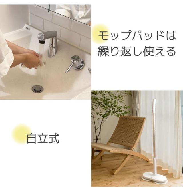 ●モップはマジックテープ式で簡単取り外し。洗って乾かせば何度でも使えます。