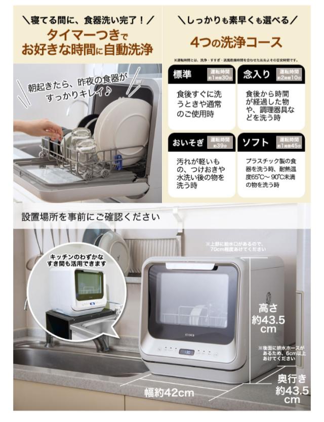 食器洗い乾燥機 siroca シロカ SS-M151 除菌率99.9% 工事不要 予約タイマー付き 3人用 コンパクト 食洗器 食洗機 食器洗い機 食器乾燥機 食器洗浄機 乾燥機 食器洗い器 キッチン家電 キッチン 送料無料