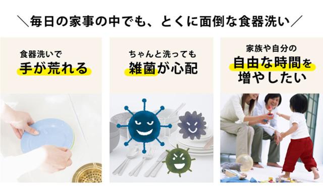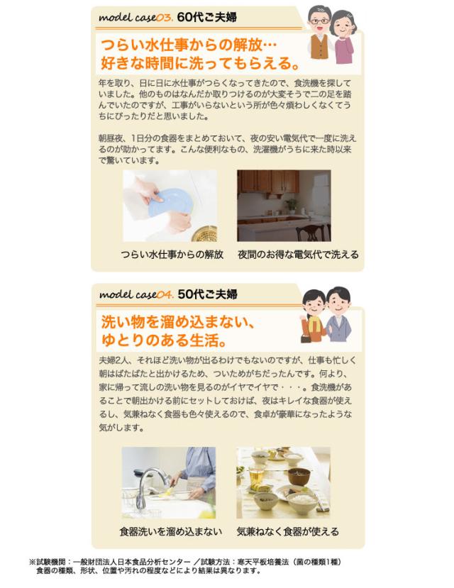 タイマー内蔵で、夜間のお得な電気代を使って洗浄したり、留守中に洗浄が終わるようにしたり、お好きな時間に自由に食器洗いが自動でできます。