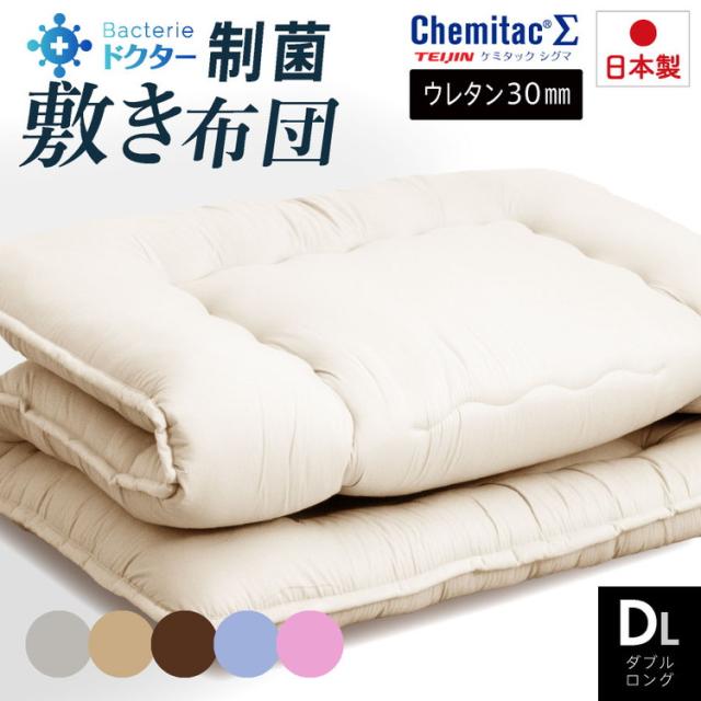 洗える 制菌 敷布団 ダブルロング 日本製 制菌 敷き布団(ウレタン入り) ダブル ロング 国産 病院仕様 制菌敷き布団 殺菌 防ダニ(代引不可)【送料無料】
