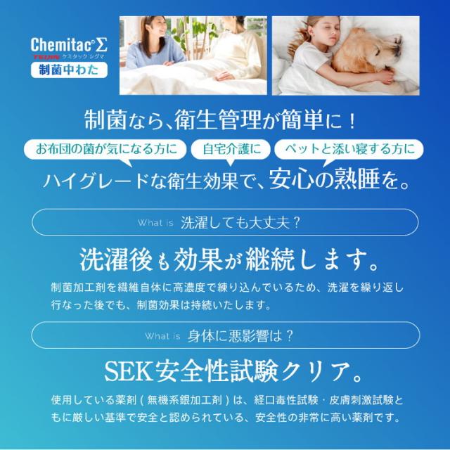 特徴:菌を抑制・殺菌+防ダニ・吸湿速乾・抗菌防臭