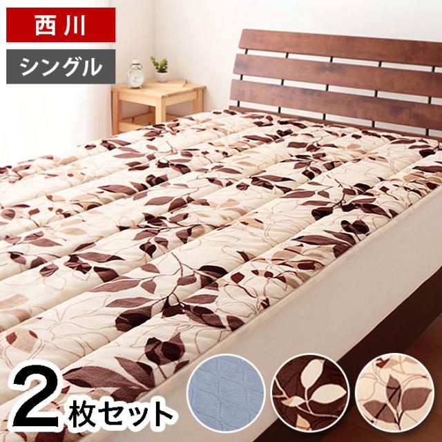 【2枚組】京都西川 中綿入りフランネル 敷パッド モートンリーフ柄 シングル あったか敷布団 水洗い可【送料無料】