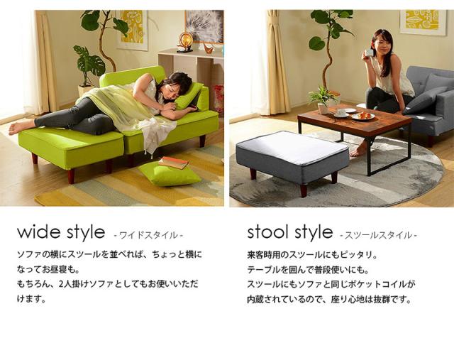 日本製 コンパクト カウチソファ 2人掛け NAP ソファ 北欧 おしゃれ アームレスソファ ソファー スツール オットマン(代引不可)【送料無