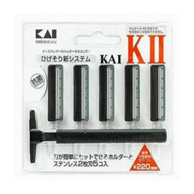刃が簡単にセットできるホルダーとステンレス2枚刃5コ入りのセットです。ホルダーはKII専用です。他の替刃には使用できません。
