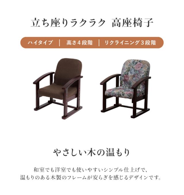 立ち座りラクラク 高座椅子 ハイタイプ 高さ調整 座椅子 高座椅子 チェア(代引不可)【送料無料】