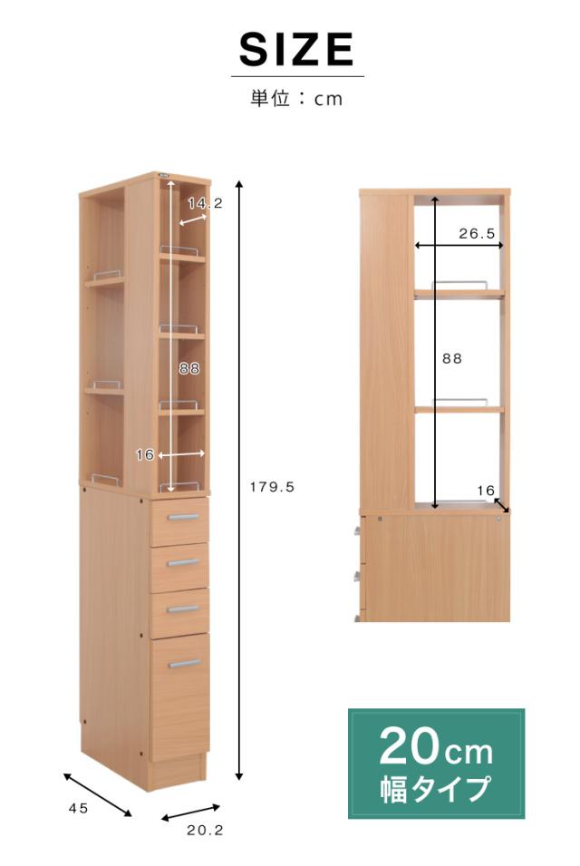 幅20cm/オープン+引き出し収納
