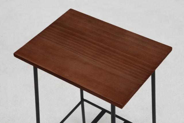 木材と細めのアイアンを組み合わせたラック。壁際のインテリアやベッドサイドなどに最適。