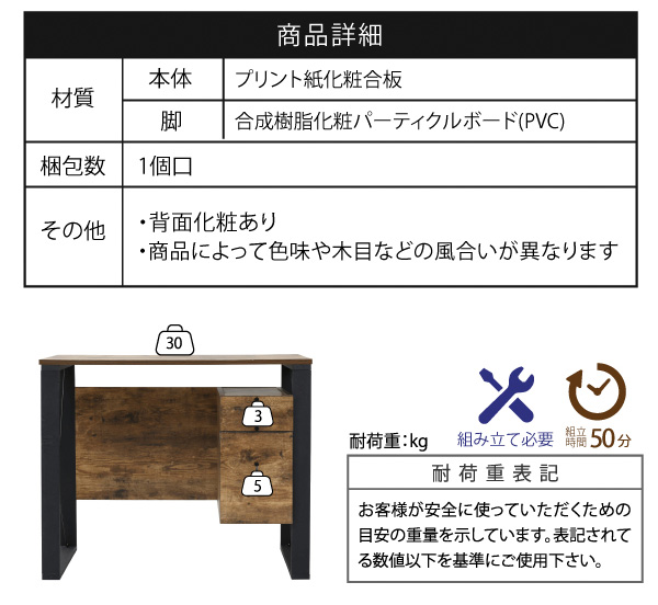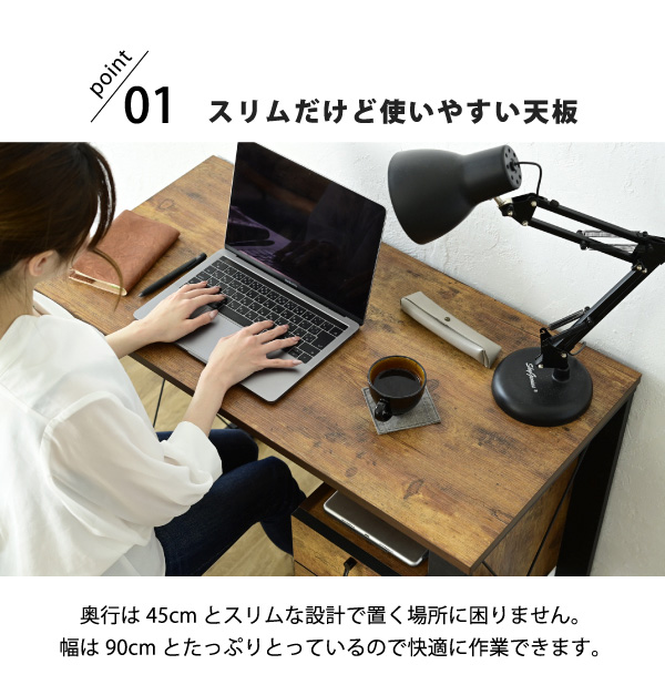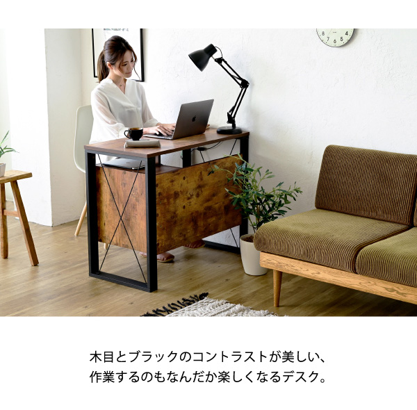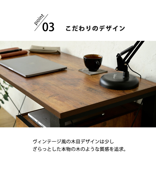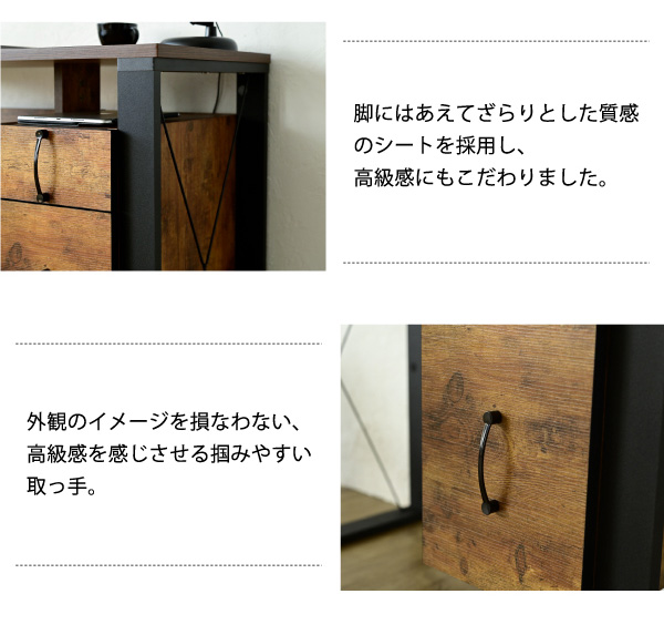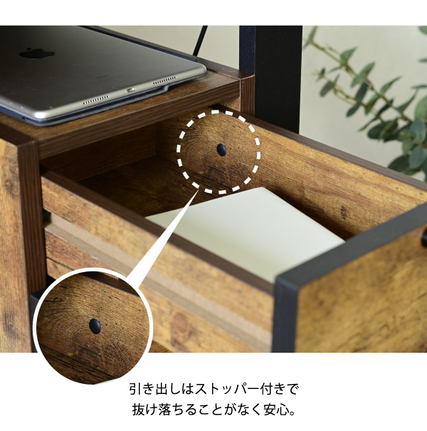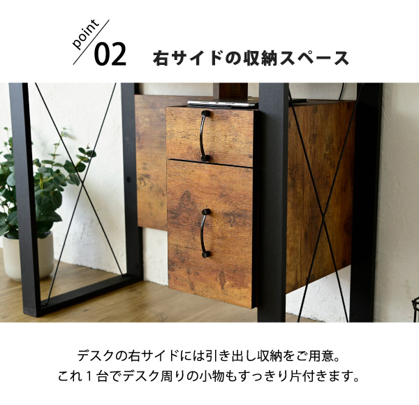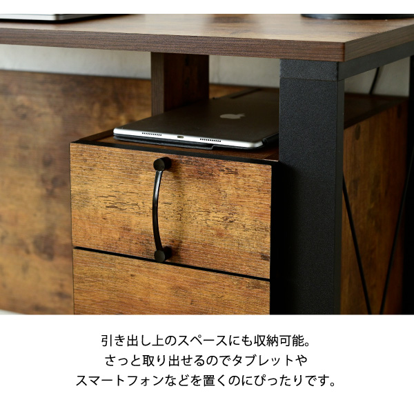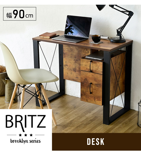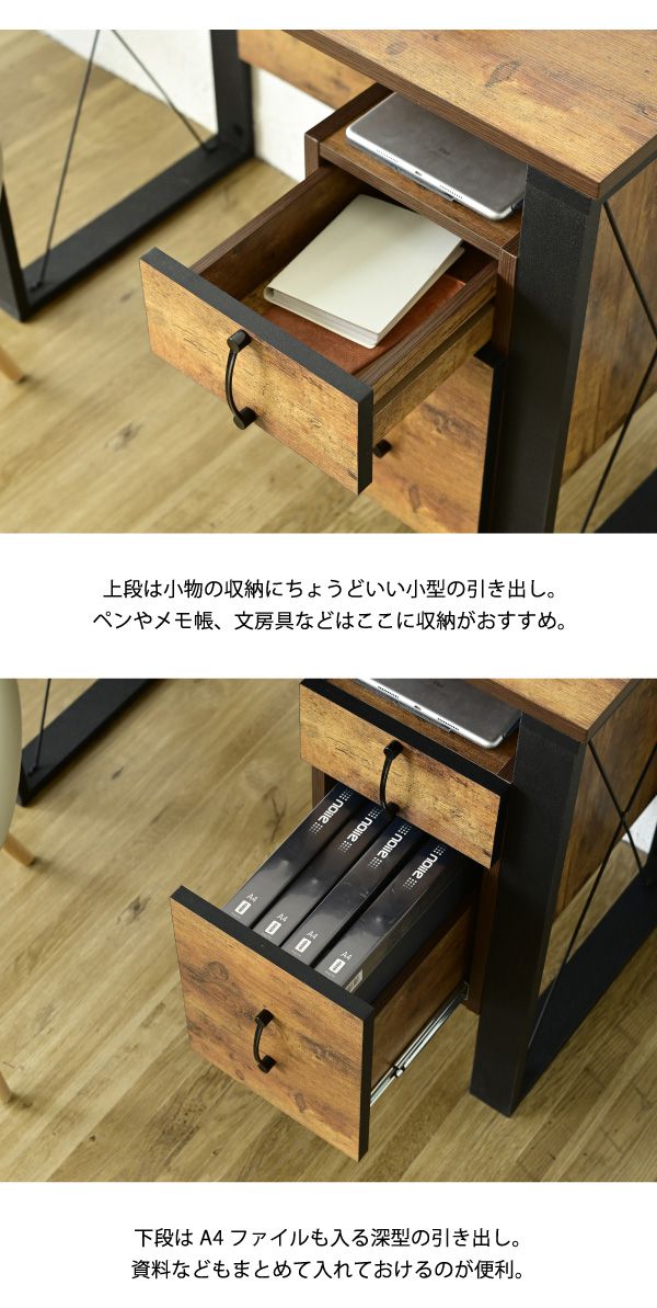 ヴィンテージ調 デスク 幅90 チェスト付き パソコンデスク ワークデスク おしゃれ 90×50 書斎机 PCデスク 在宅勤務 テレワーク ブルックリン(代引不可)【送料無料】
