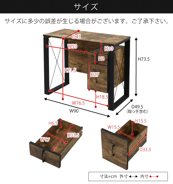 [外寸]幅90×奥行49.5×高さ73.5cm
