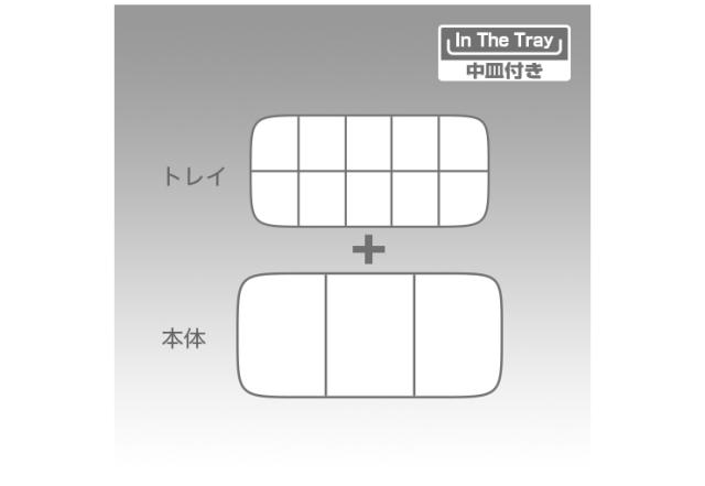 中皿用仕切板8枚・本体用仕切板2枚付きで、カスタマイズが可能です。