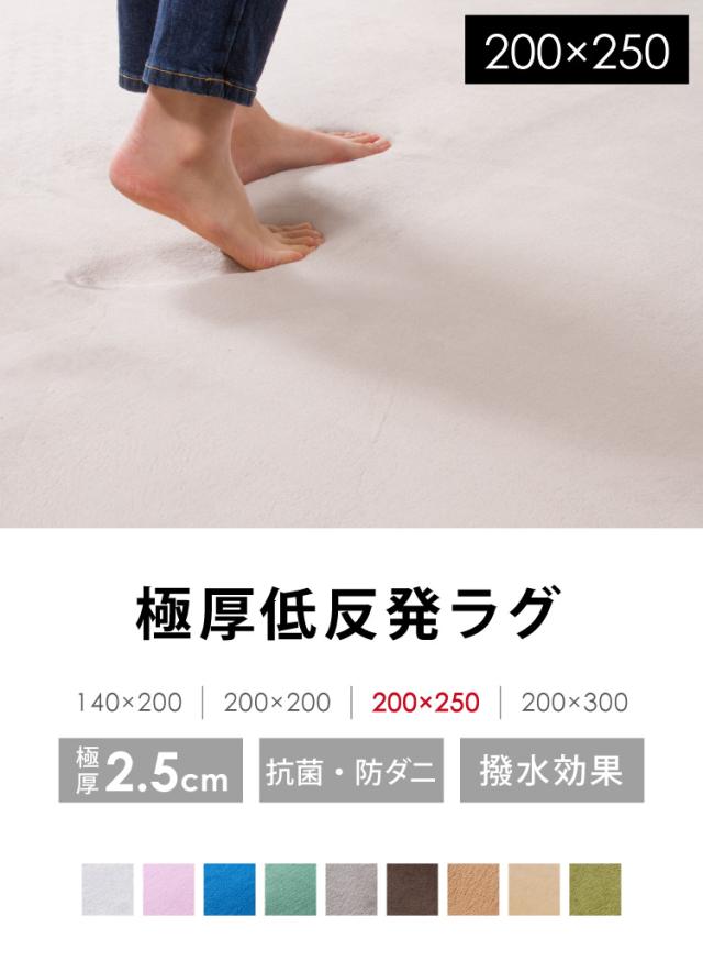 極厚低反発ラグ 200×250cm 長方形 無地 滑り止め付 ホットカーペット対応 低反発 抗菌 防ダニ 撥水 遮音効果 北欧 おしゃれ リビング ラグ ラグマット カーペット マット 絨毯 ラグカーペット 韓国インテリア【送料無料】