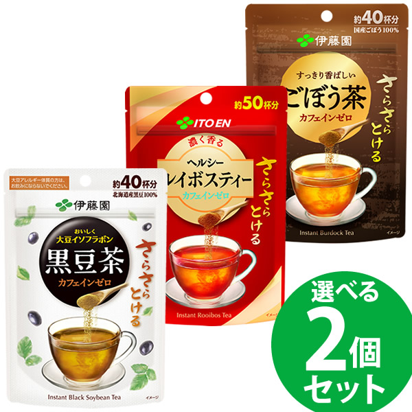 伊藤園 さらさらとける おいしく大豆イソフラボン黒豆茶/濃く香るヘルシールイボスティー/すっきり香ばしいごぼう茶 選べる2個セット (メール便送料無料) カフェインゼロ インスタント すぐにとける
