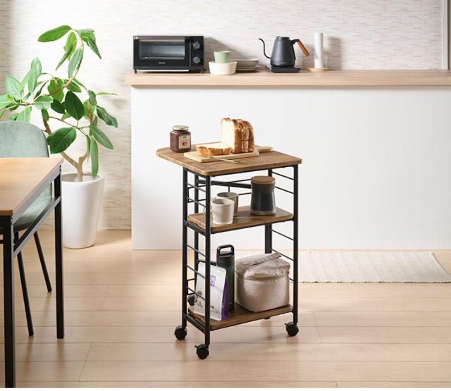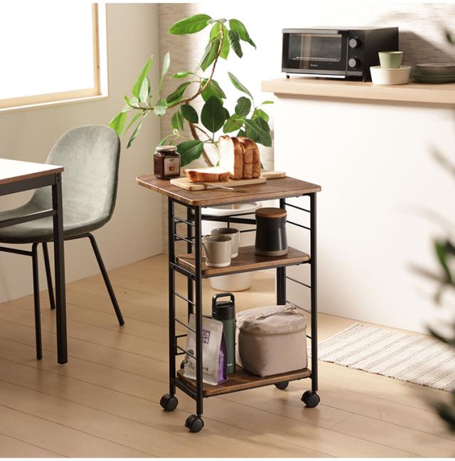 バタフライワゴン 折り畳み式 キッチンワゴン 幅50(20) 奥行45 高さ70cm 木目調 キッチン収納 折りたたみ収納 キッチンラック リビング ダイニング VBW-50(BR) VBW-50(NA)(代引不可)【送料無料】