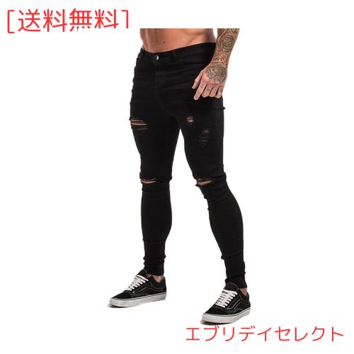 [GINGTTO] ジンット ダメージジーンズ メンズ すきにーぱんつ ストレッチ デニムパンツ ブラック 黒 36
