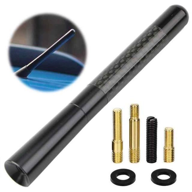 カーラジオアンテナ ショートアンテナ 3.5cm/8cm/12cm 高感度 マストカーボンファイバー スタビーカーアンテナ ルーフアンテナ AM/FM ショートアンテナ (黒 12cm)