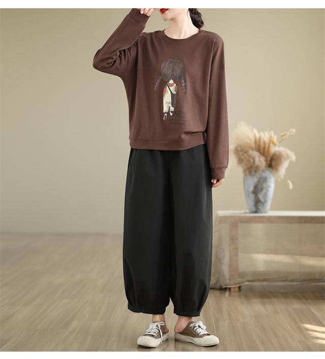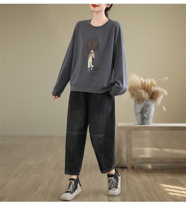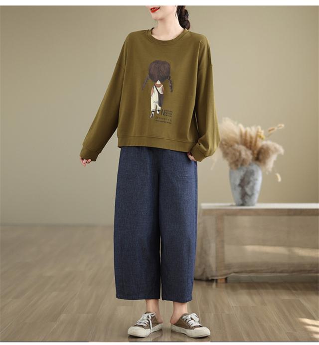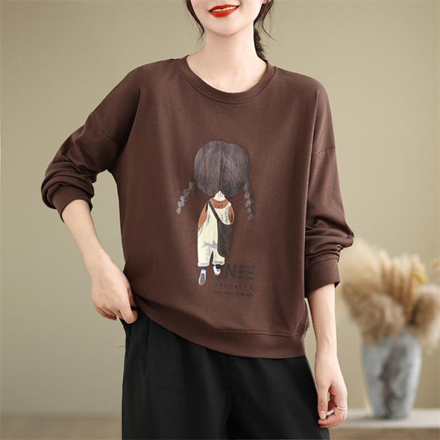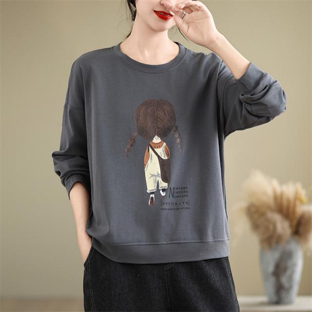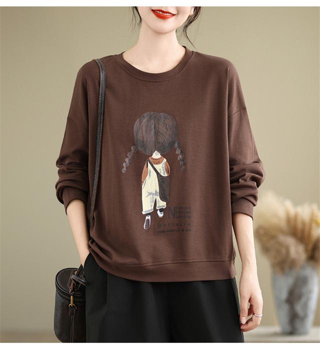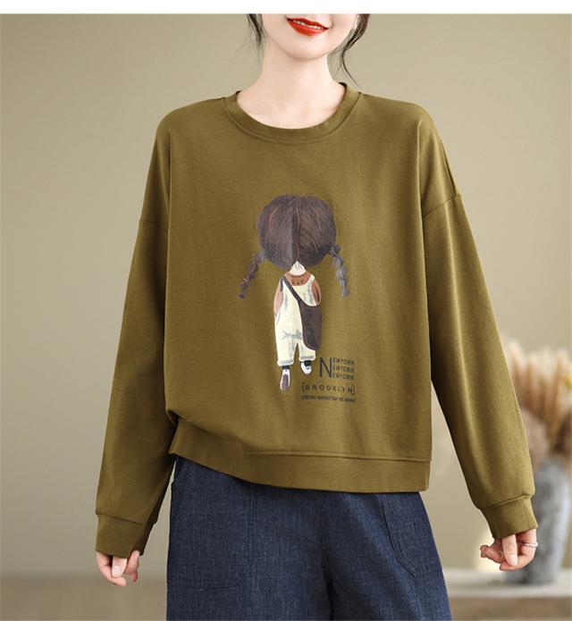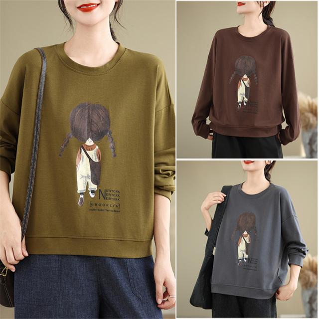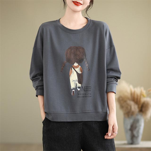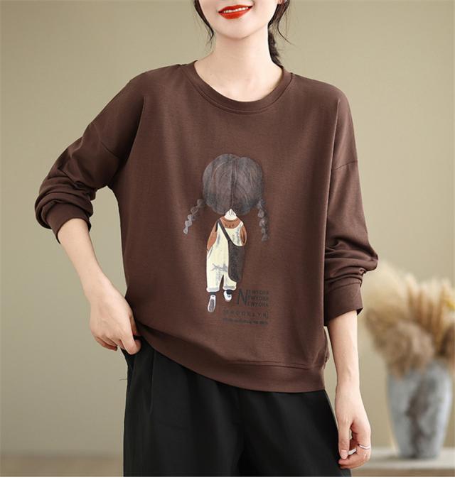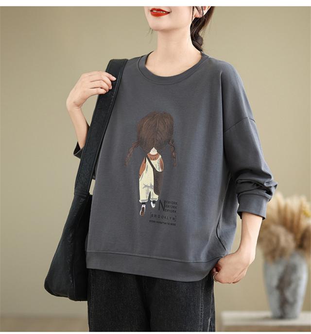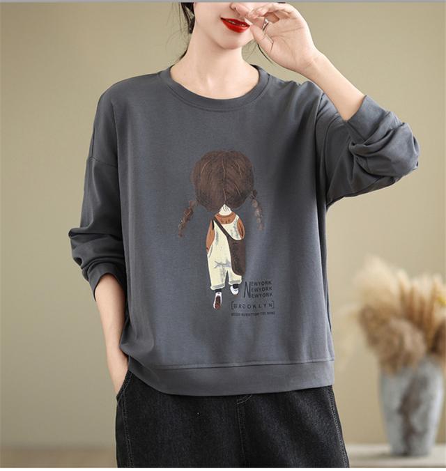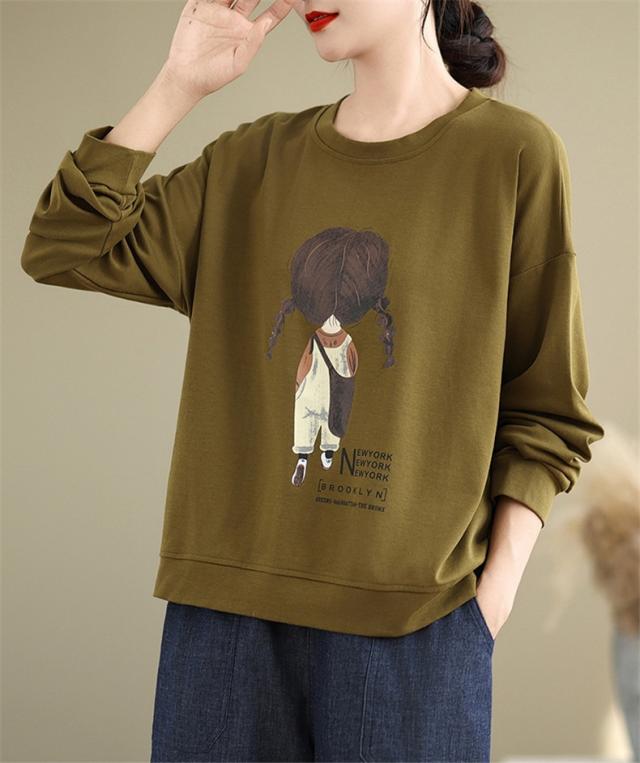 レディース 春秋 トップス トレーナー 長袖 クルーネック スウェット 漫画柄 プリント コットン リメイク風 可愛い オンオフ問わず使える万能アイテム