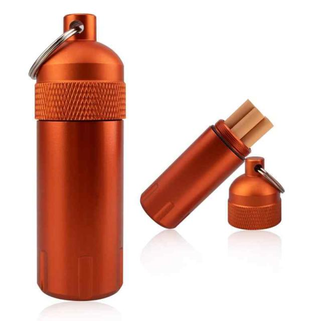 【多機能】 このシリンダー容器は防水性、密閉性が良いです。口のところはネジ型なデザインで、雨の日でも水に落ちても、しっかり内部の物を守れます。更に携帯灰皿としてだけではなく、シガレット、カギ、電池、USBなどの小物を収納できます。