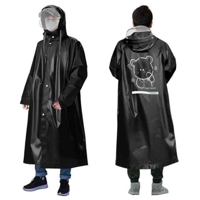 [Hyshuker] レインコート 自転車 リュック対応 レインウェア 安全反射テープ付き ロング丈 かわいい 雨具 防水 防風 軽い フェイスカバー付き レインポンチョ 通勤 通学 男女兼用 ブラック L