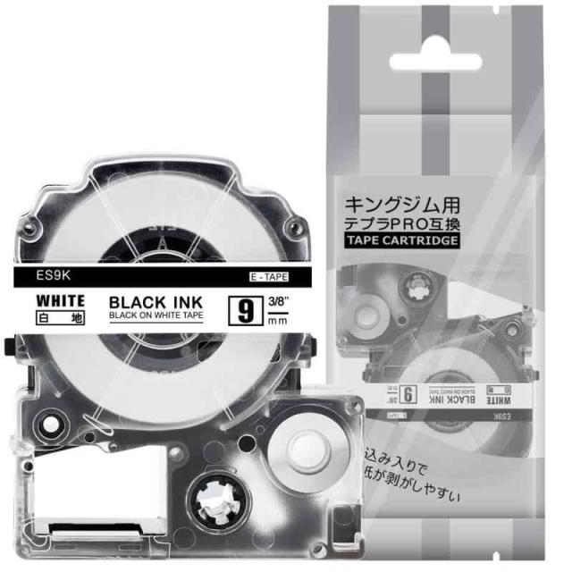 【テープセット】: テプラ テープ 9mm ES9K の互換品、1個セット。【汎用サイズ】: 9mm * 8m 。【色】: 白地黒文字。
