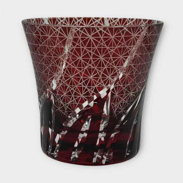 切子 グラス タンブラー ロックグラス ビールグラス ぐい呑み ウィスキー… (レッド)