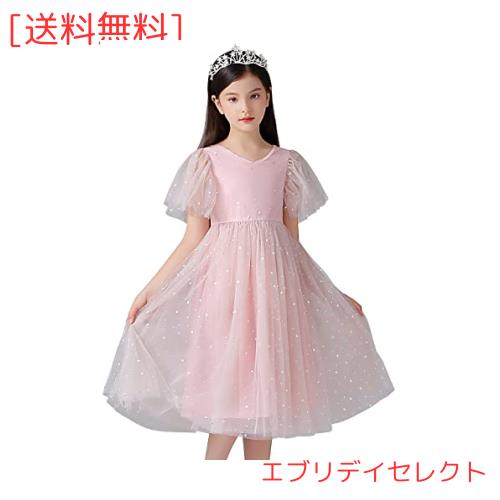 スタイル:特徴はVネック、Aライン、ふんわりしたチュール袖、きらきらした星柄です。そして、ハイウェストデザインなので、綺麗なシルエットでお召しいただけます。ドレスの後ろもVネックデザインです。背中にファスナーがあるので、脱ぎやすいです。このキラキラしたチュールドレスをはくと、美しくて優雅なお姫様になります。スカートは高品質のチュールを採用し、ボリュームもあり、ふわふわして、とてもきれいです☆おしゃれな子供用発表会プリンセスドレスです。女の子子供ドレス、ガールズワンピース、キッズドレス、とても可愛いし、気に入ってます。子供 女の子 新年 ドレス、子供 クリスマス 衣装、子供 女の子 クリスマスワンピース、ピアノ発表会 フォーマルワンピース、女の子 半袖 フォーマル。