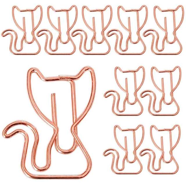 【製品仕様】●セット内容:ペーパークリップ10個入り;●デザイン:ネコ;●サイズ:約31*24mm;●素材:金属+電気メッキ;●色:ピンクゴールド