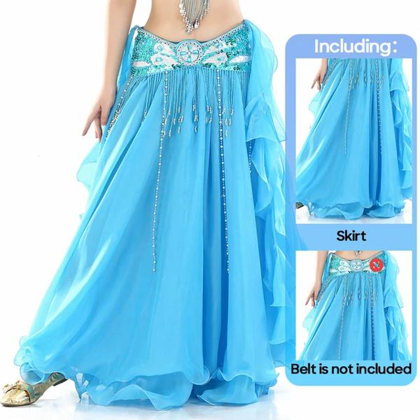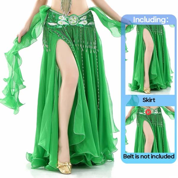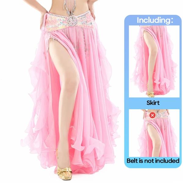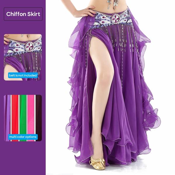 女性用ダブルスリットベリーダンススカート カールした葉 ハイスリット イヤーガーゼ ハイスリット 大人のパフォーマンス 練習