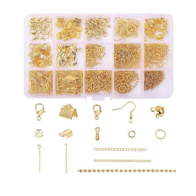 YFFSFDC 金具セット 15種 ハンドメイド アクセサリーパーツセット ゴールド アクセサリー パーツ ジュエリー ボールチップ チェーン ワニ口 DIY用 手芸用品 (ゴールド)