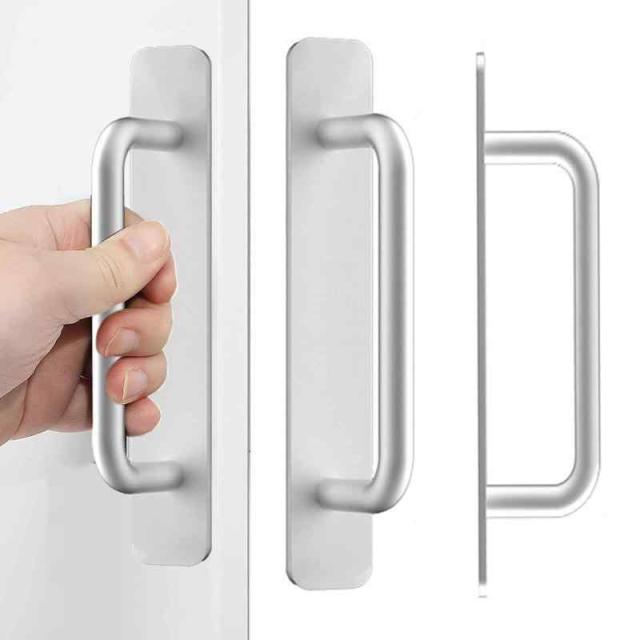 ドア取手 引き出し取手 2個セット 自己粘着式 ハンドル ノブ 両面テープ式 アルミニウム合金 戸棚引きハンドル 取っ手 引き戸開閉補助 引き戸 引き手 便利 DIY 金具 取り付けが簡単 家具/窓/網戸/引き出し/戸棚/ドア用 (シルバー)