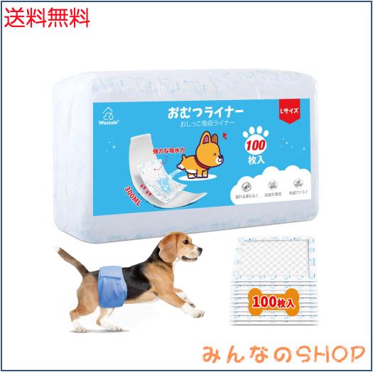 犬用おむつライナーL 100枚入 高吸収性能 ずれない 犬 オムツ 男の子 女の子兼用マナーベルトパッド 横漏れ対策 老犬介護 マーキング防止