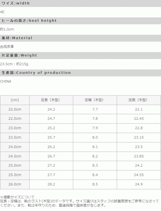 足長(木型):24.2cm/足幅(木型):7.7cm