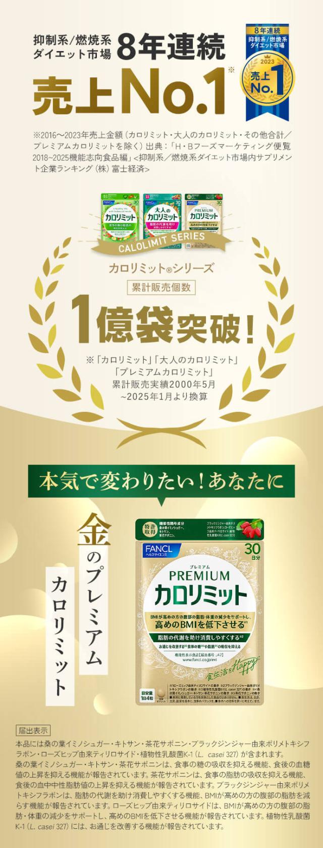 プレミアムカロリミット<機能性表示食品>90日分【ファンケル 公式】[FANCL ダイエット サポート サプリメント キトサン カロリー サプリ 健康食品 桑の葉 くわのは サポニン 女性 男性 血中中性脂肪 40代 ヘルスケア 健康サプリ キトサンサプリ 糖 吸収]