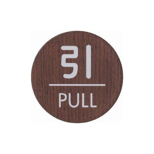 ・表示内容:引 PULL・取付仕様:粘着シール・縦(mm):50・横(mm):50・色:ウォールナット・タイプ:丸型