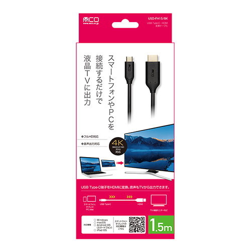 ミヨシ Type-C to HDMIケーブル 1.5m ブラック USD-FH15/BK(代引不可)