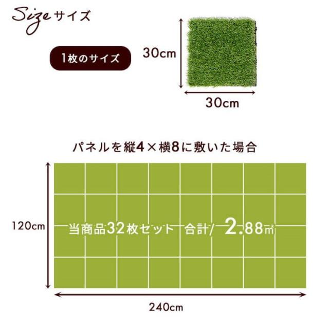 人工芝 芝タイル 32枚入り 幅30cm 人工芝パネル ジョイント式 芝生 ベランダ 庭 ガーデニング ガーデン DIY セット 2.8平米 デッキ 正方形 屋外(代引不可)【送料無料】