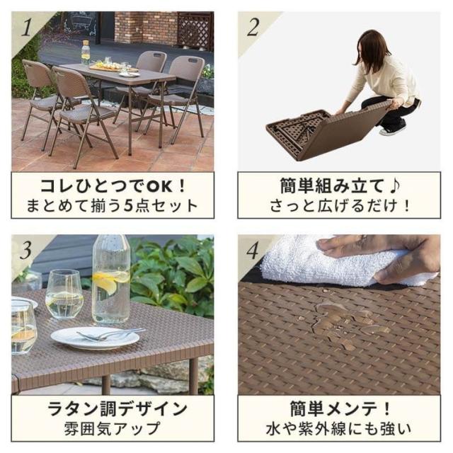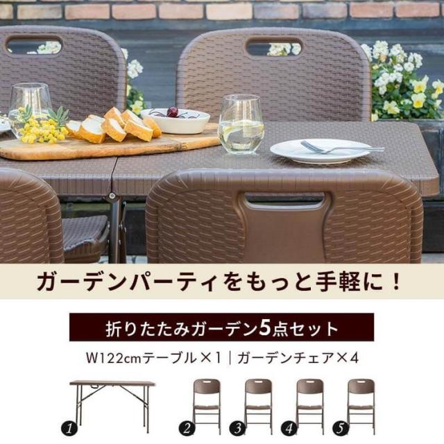 ラタン調 幅122cm折りたたみガーデン5点セット